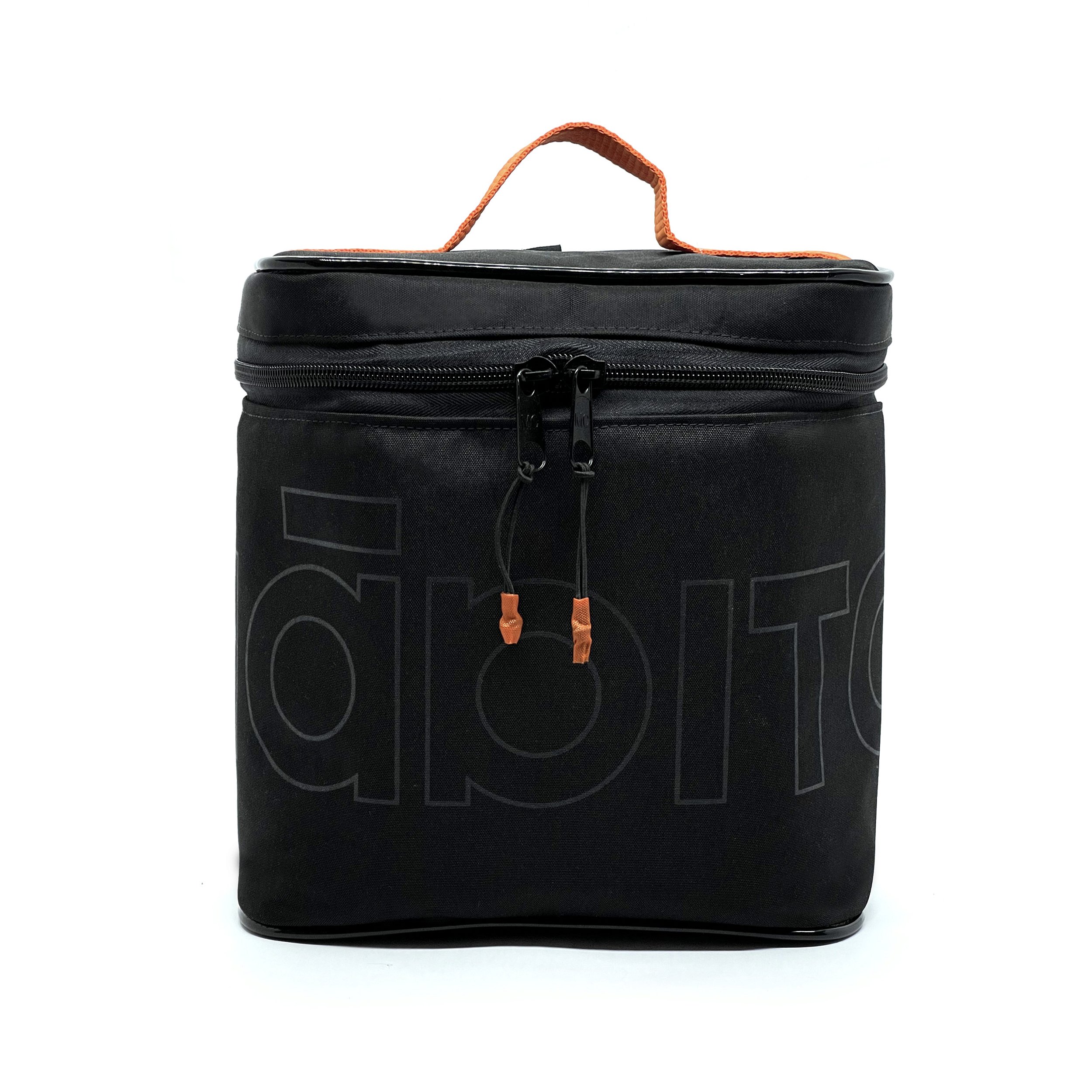 A Frasqueira Hábito Living é composta por nylon oxford resinado, forrado com nylon 210 100% poliéster, zíper, alça e tela.